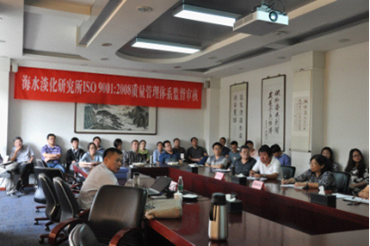 此次审核覆盖海岛水资源保护与利用研究中心、膜技术与应用研究室以及海水直接利用技术研究室等部门。审核员依据ISO9001:2008标准和体系文件对各部门资源配置、质量方针目标的实现程度、体系运行和持续改进、主要业务过程及其有效性进行了审查。除例行监督审核外,此次审核还增加了蓝十字膜技术有限公司北塘生产现场的审核。在各部门的配合下,审核顺利顺利获得,认证范围增加了“水处理设备,膜产品生产”。在末次会议上,审核员提出此次审核发现的一般不符合项、孤立事项和改善机会。一般不符合项主要涉及蓝十字膜公司的设备管理、机加工过程控制以及产品检验等方面。